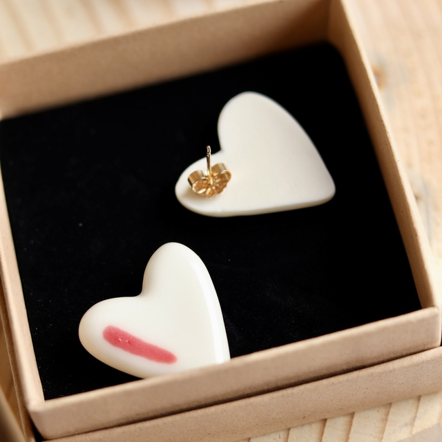 Boucles d’oreilles en porcelaine, en forme de cœur.