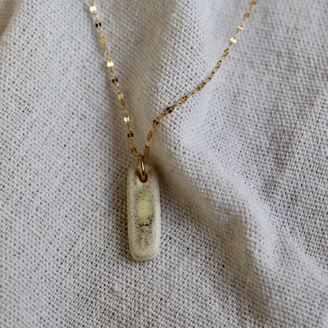 Craquez pour le collier avec son pendentif en porcelaine, émaillé couleur sable.
