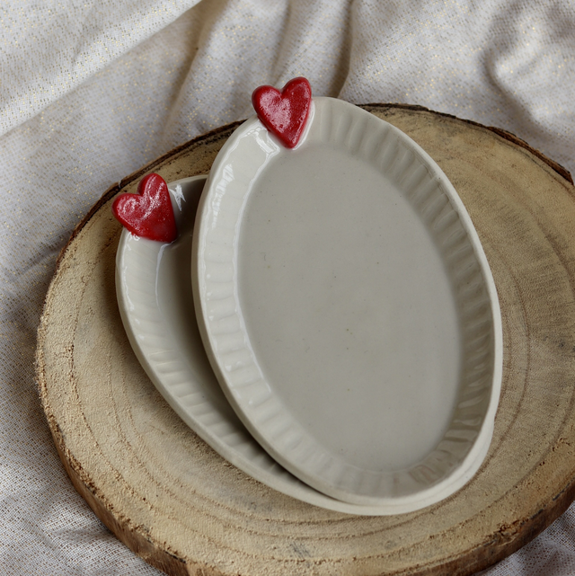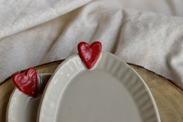 Coupelles en grès avec petit coeur rouge