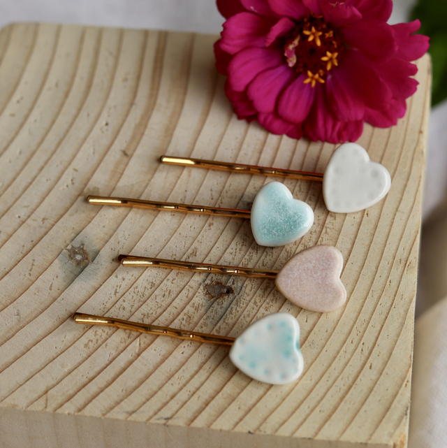 Ajouter une touche de fantaisie à vos coiffures avec les petites barrettes cœur en porcelaine 💖