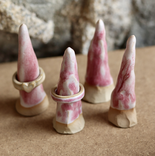 Petits cônes de bague rose pour y glisser vos bagues.