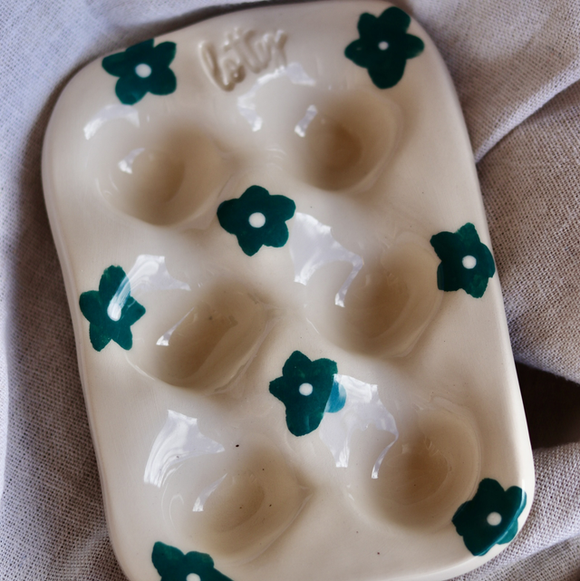 Plaque à œufs - Motif fleurs vertes